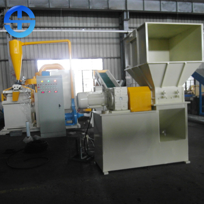 Il materiale è alimentazione nella prima trinciatrice, che tagliuzzano i cavi (φ≤25mm) nei pezzi di lunghezza 10-20mm, quindi trasportano questi pezzi nel secondo frantoio, la seconda trinciatrice (10 pc che girano le lame, 4 lame fisse pc) tagliuzzerà i cavi nei pezzi di plastica di lunghezza 3-5mm o rama i pezzi. Per concludere, nell'ambito della forza della spinta del flusso d'aria e di vibrazione dello schermo, i pezzi muoveranno in avanti uno lo schermo, il rame separato da plastica e li invieranno fuori attraverso la presa d'aria di aspirazione di vibrazione.