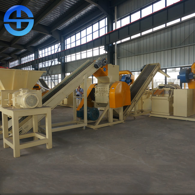 Tramite il primo frantoio, l'attrezzatura rompe il materiale alla rinfusa nella dimensione di 5-10cm. Dopo il trasporto al frantoio per schiacciare secondario, il materiale schiacciato è 10-15mm nella dimensione. Attraverso la selezione del separatore magnetico, il materiale magnetico quale ferro è separato dal materiale schiacciato. Dopo la separazione di rame e di alluminio dal separatore di vibrazione, il rame, la polvere di alluminio, del ferro ed altre sostanze finalmente sono separati.